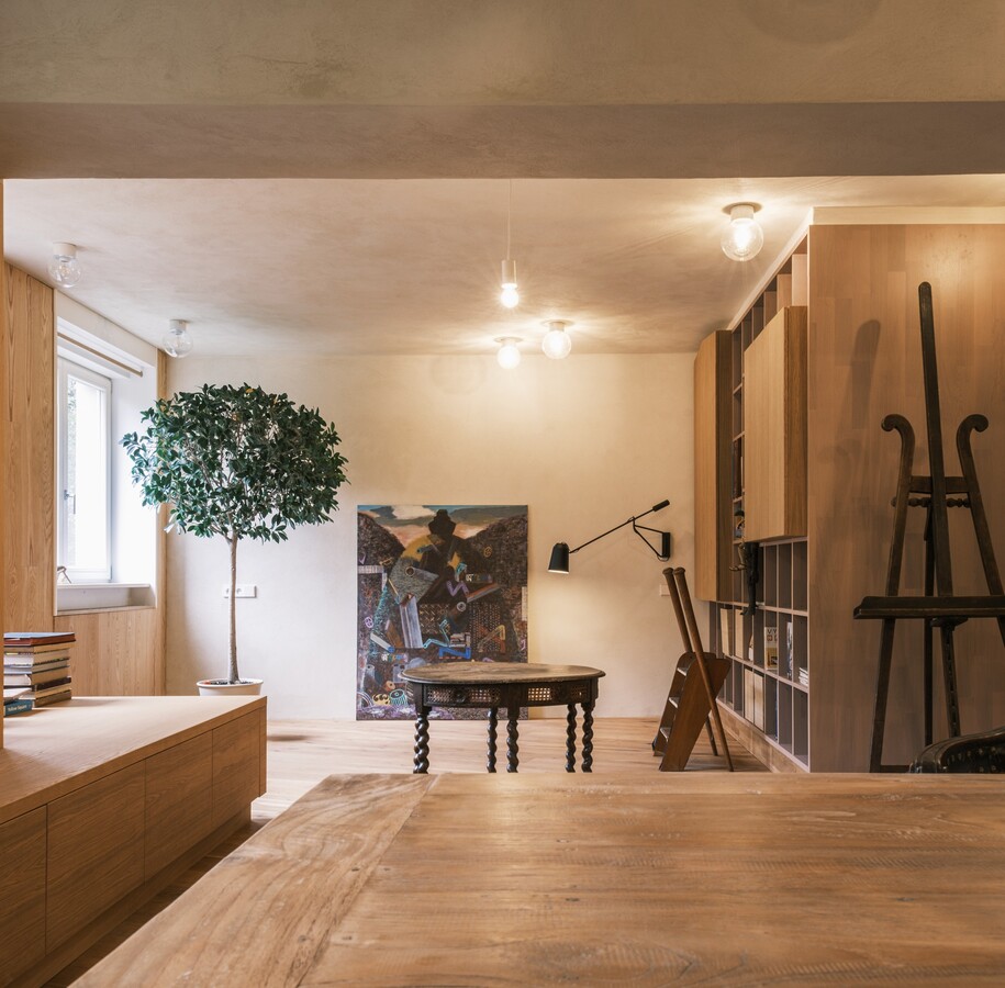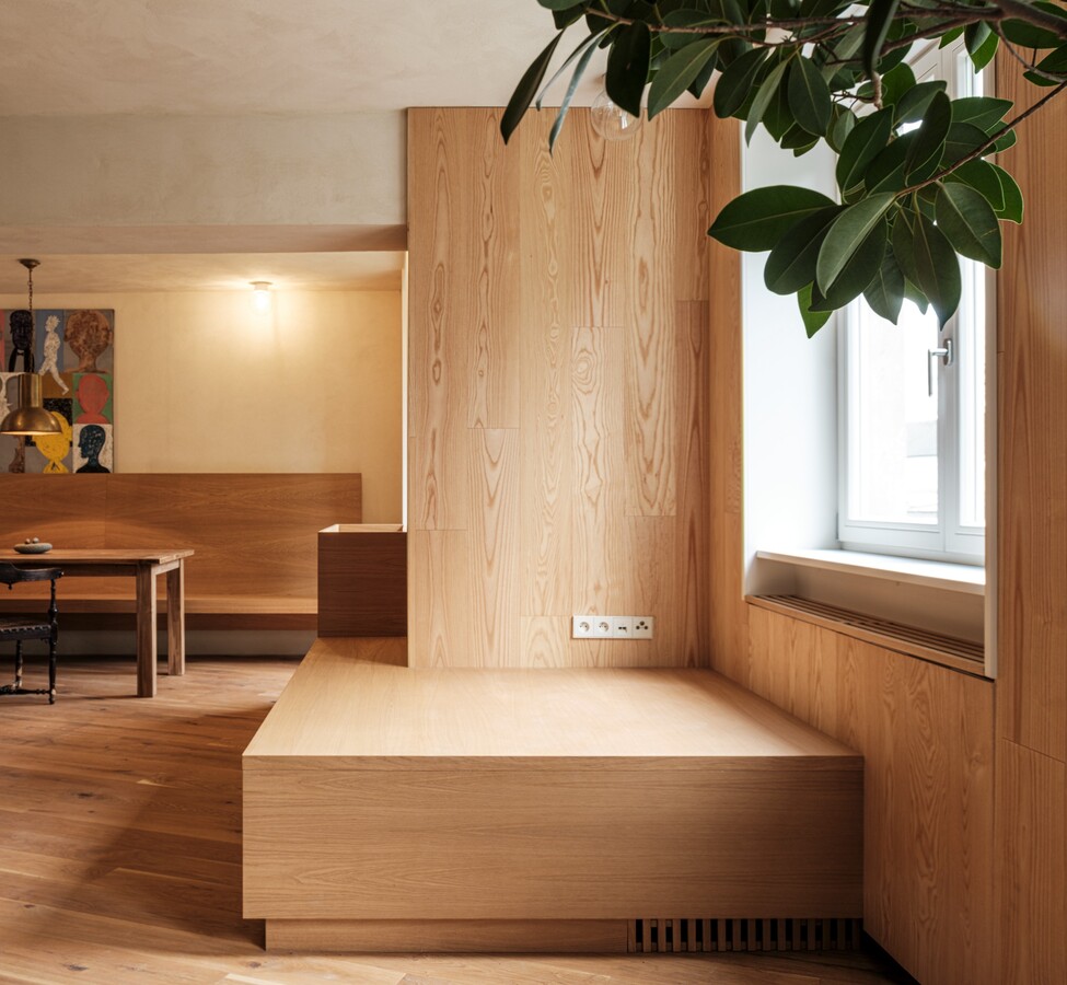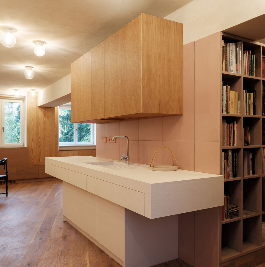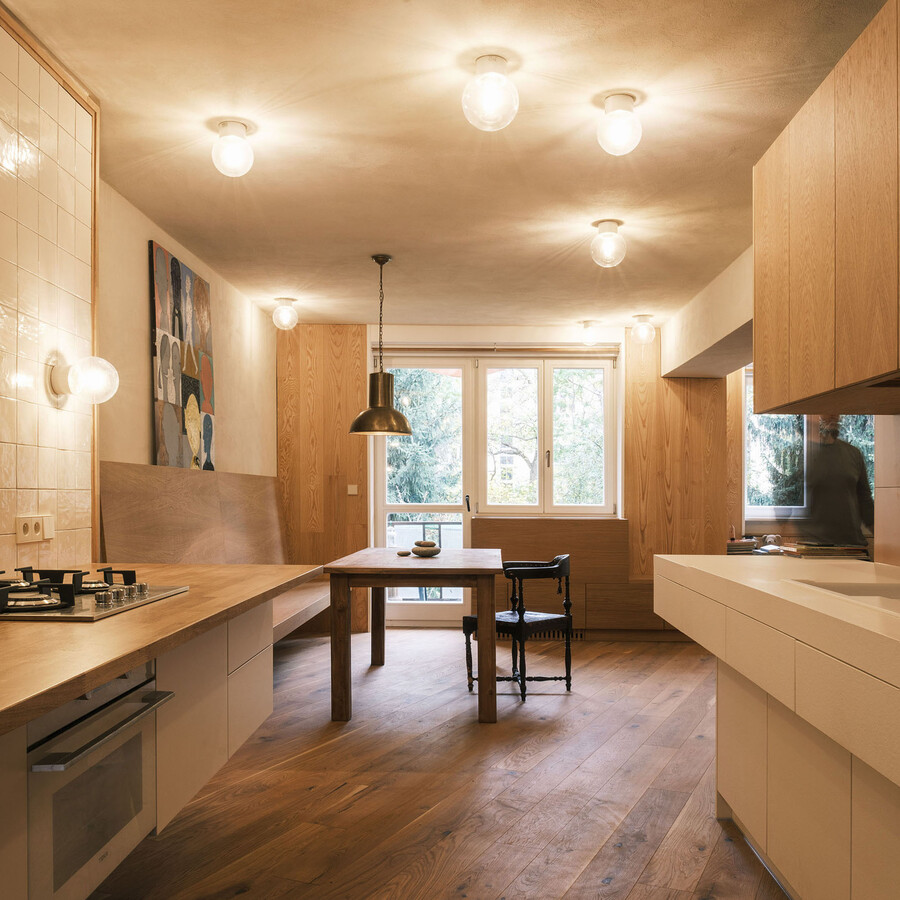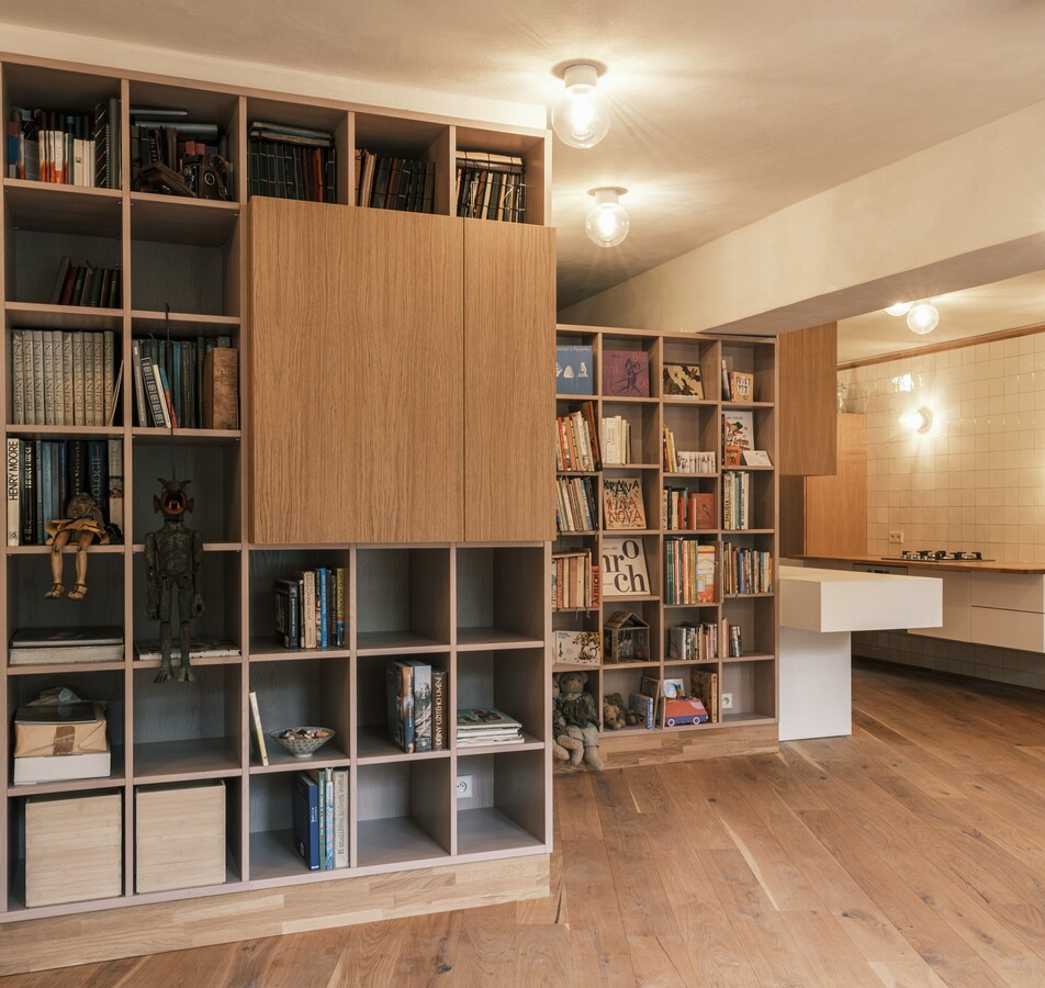 Kompletní realizace interiéru pražského bytu od podlahy, přes dveře, kuchyňskou linku až po nábytek na míru.